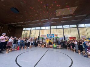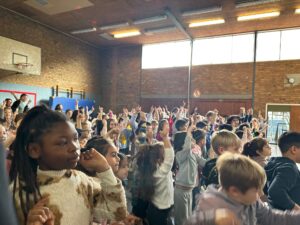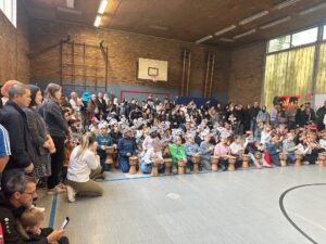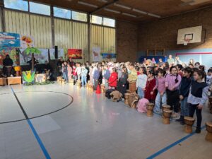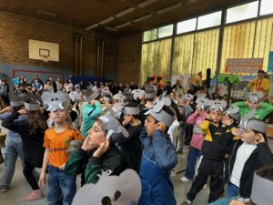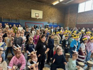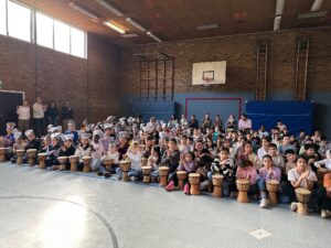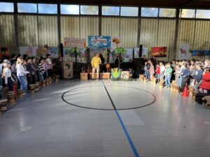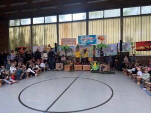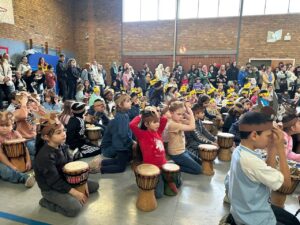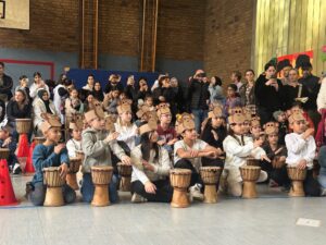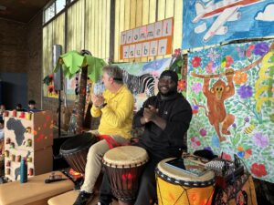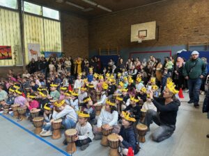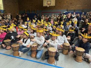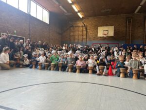In der Woche vor den Herbstferien haben wir mit unseren SchülerInnen an einem ganz besonderen Projekt teilgenommen. Der Trommelzauber verzauberte die Lambertischule in ein rhythmisches Dorf in Afrika. Auf der Reise nach Tamborena entdeckten wir den schönen Kontinent Afrika und lernten etwas über das Land, die Leute und die Tiere. Arnd und Paul zeigten uns das Trommeln. Wir haben in kurzer Zeit sehr viele Rhythmen und Tänze geübt, die wir am Donnerstag unseren Eltern, Geschwistern und Großeltern in einer Aufführung gezeigt haben. Abgerundet wurde der Tag mit selbst gebackenen Waffeln von den LehrerInnen.