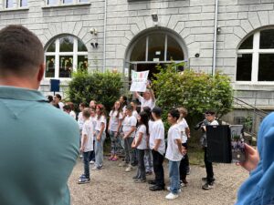 Heute ist ein schöner, aber auch trauriger Tag. Es ist der letzte Tag vor den Sommerferien. Alle freuen sich auf das lange Ausschlafen, Zusammensein mit der Familien, Urlaub und Zeit zum Spielen, wann immer man das machen möchte. Doch trotzdem schimmern auch bei einigen Kindern Tränen in den Augen, weil es ihr letzter Tag an der Lambertischule ist und sie ihre geliebte Grundschulzeit hinter sich lassen müssen. Unsere ViertklässlerInnen sind nach den Sommerferien in der fünften Klasse! Deshalb feiern wir sie heute noch einmal! Alle anderen Klassen bilden einen Spalier durch den die vierten Klassen laufen. Auf dem Schulhof singen wir gemeinsam Lieder und geben den ViertklässlerInnen gute Wünsche auf den Weg. Danach geht es noch einmal kurz in die Klassen zurück bis die lang ersehnte Schulklingel das letzte Mal in diesem Schuljahr erklingt. Wir wünschen unseren ViertklässlerInnen und ihren Eltern für die kommende Zeit alles Liebe und Gute! Und natürlich… schöne Ferien an alle Kinder der Lambertischule!!!